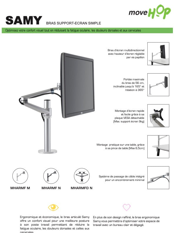 Le bras articulé ergonomique fixe Samy offre un angle de vue optimal et un confort unique.