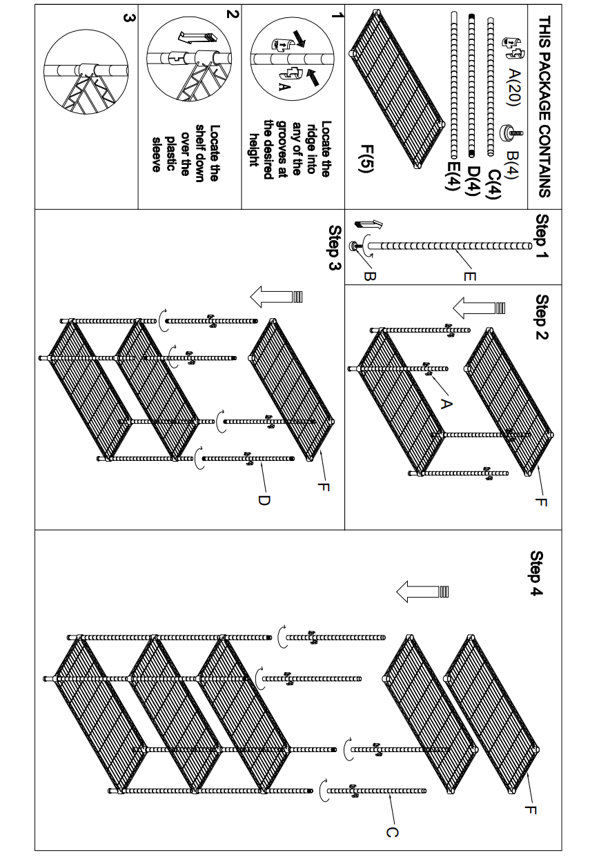 ⦁ L’étagère est composée de 5 tablettes fil de 90 cm (taille M).