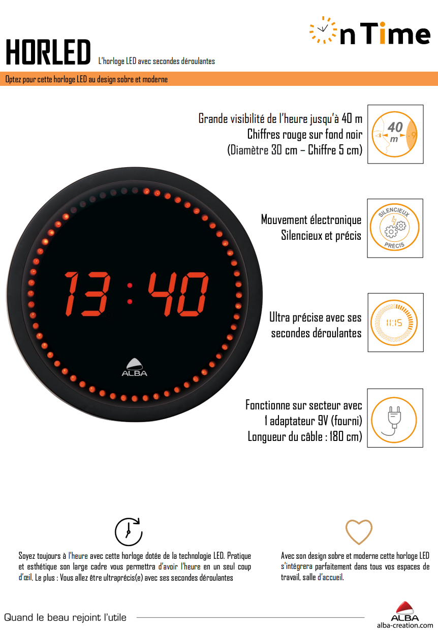- Grâce à sa technologie LED, l’horloge murale sera en harmonie avec l’environnement.