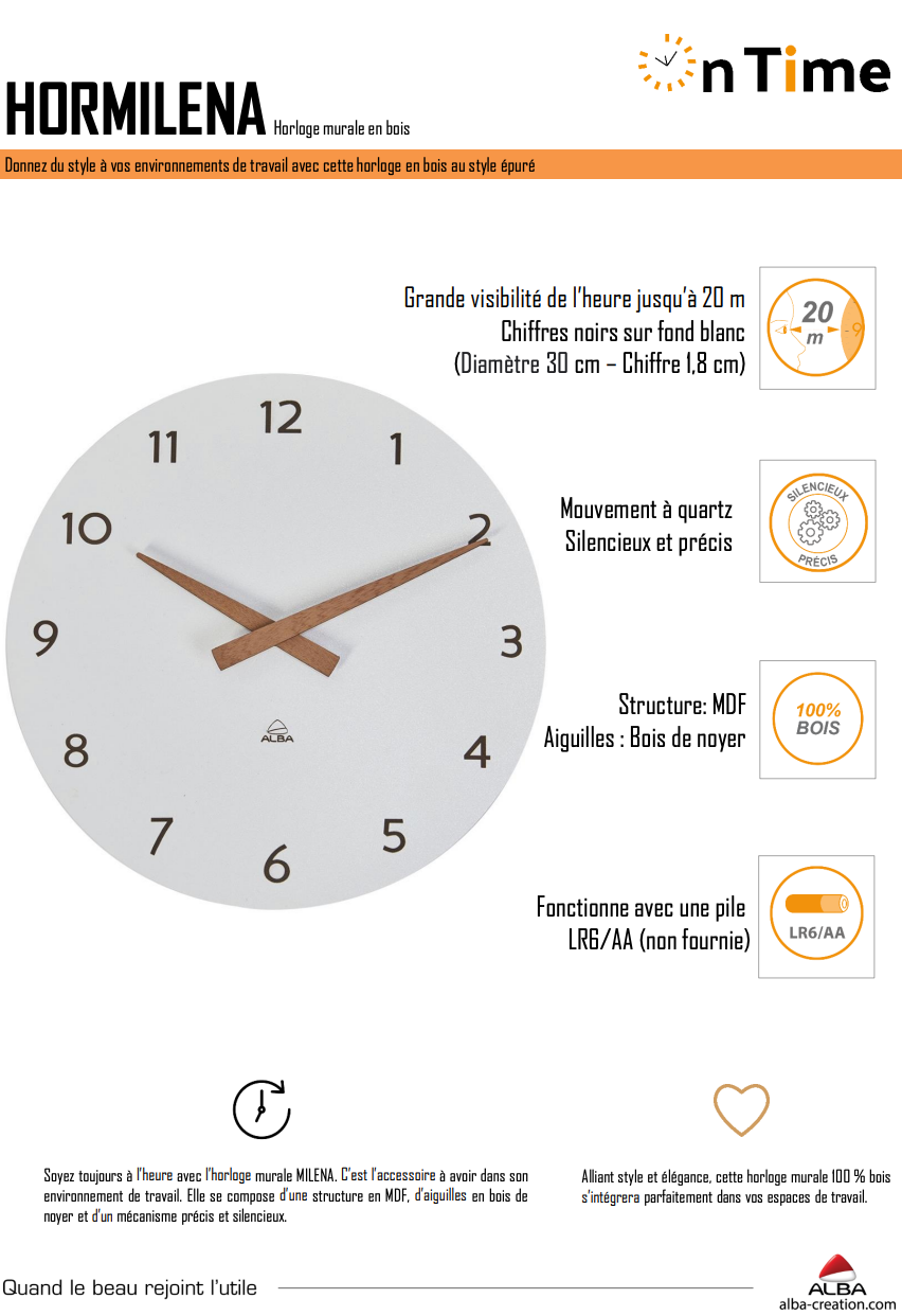 - L'horloge Hormilena donne du style à votre espace de travail grâce à ce look minimaliste