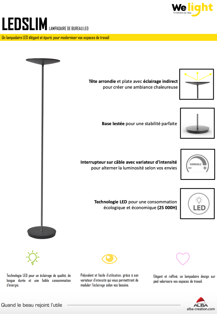 Sobre et design, le lampadaire LEDSLIM donnera du style à vos intérieurs professionnels. Avec son éclairage indirect, créez une ambiance chaleureuse, propice au travail.