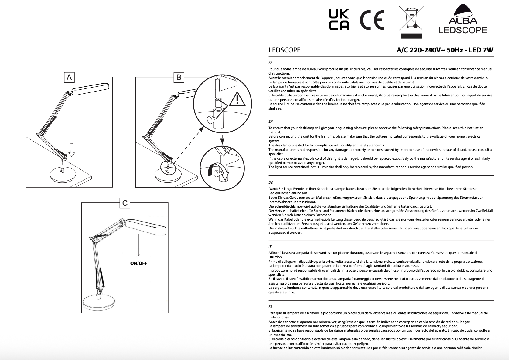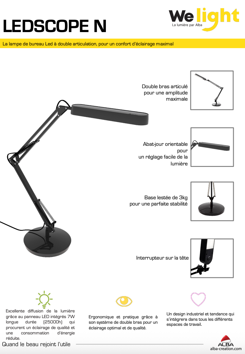 - Grâce à ses deux bras articulés et sa tête orientable, vous pourrez régler facilement la lumière.