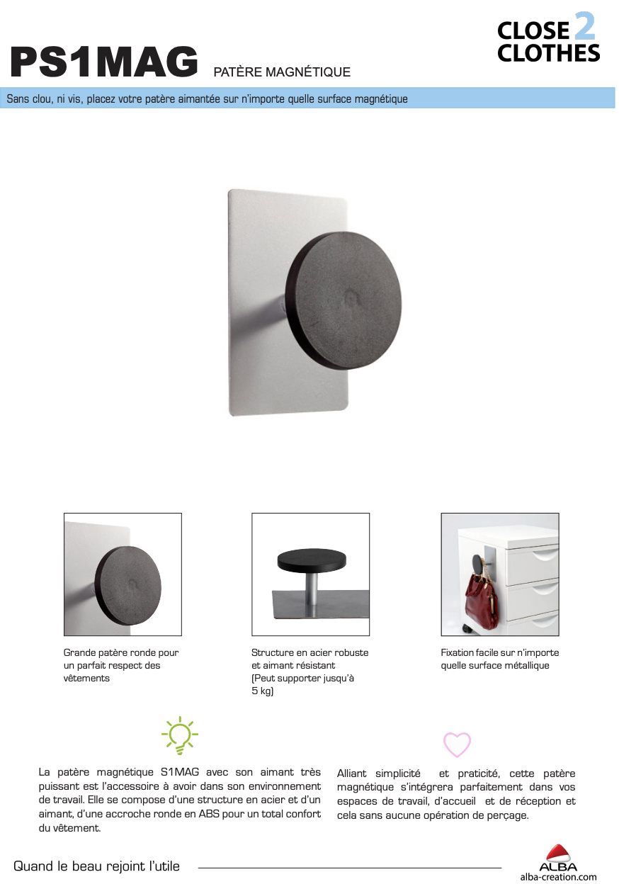 - Munie d’un double aimant, elle adhère à n’importe quelle surface métallique (tableau, plaque, armoire, porte, etc.)