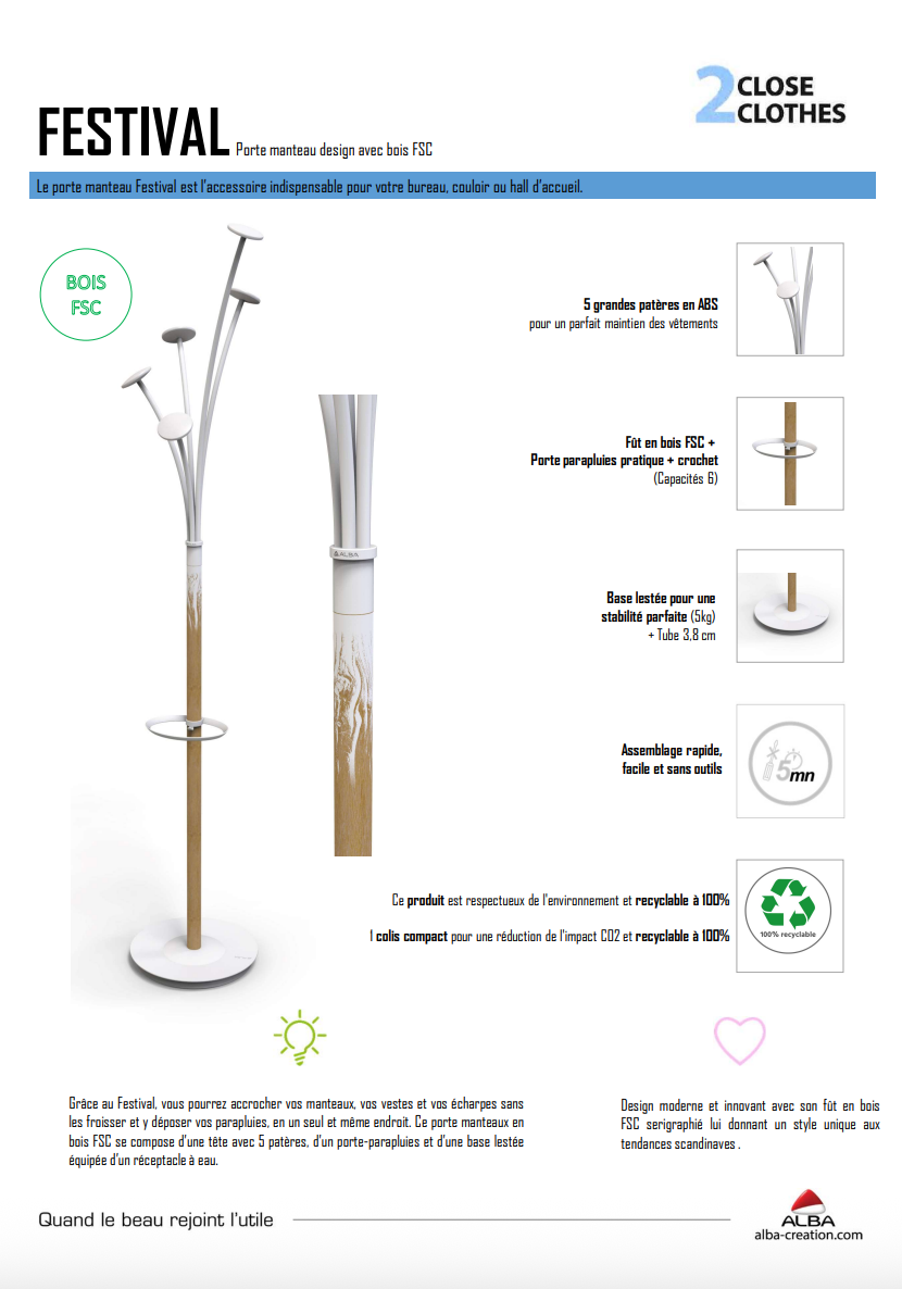 Grâce au Festival, vous pourrez accrocher vos manteaux, vos vestes et vos écharpes sans les froisser ainsi que suspendre vos parapluies, en un seul et même endroit.