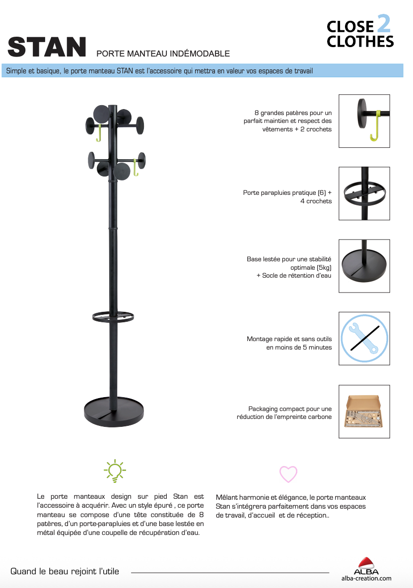 - En 5 minutes et sans outils, votre porte manteaux Stan est sur pied.