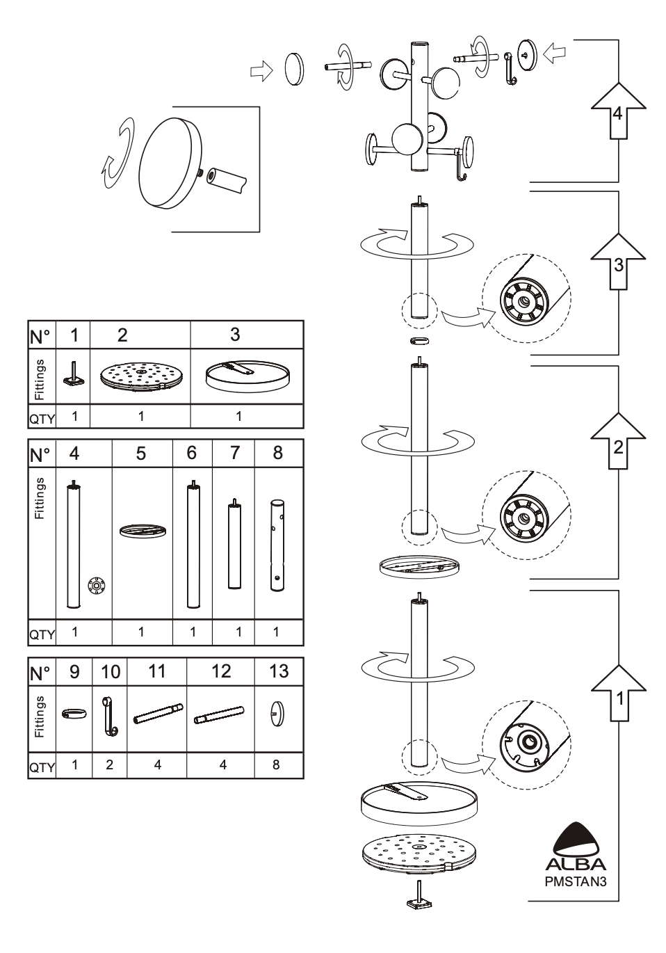 Il se compose d’une tête constituée de 8 patères, d’un porte-parapluies et d’une base lestée en métal équipée d’une coupelle de récupération d’eau.