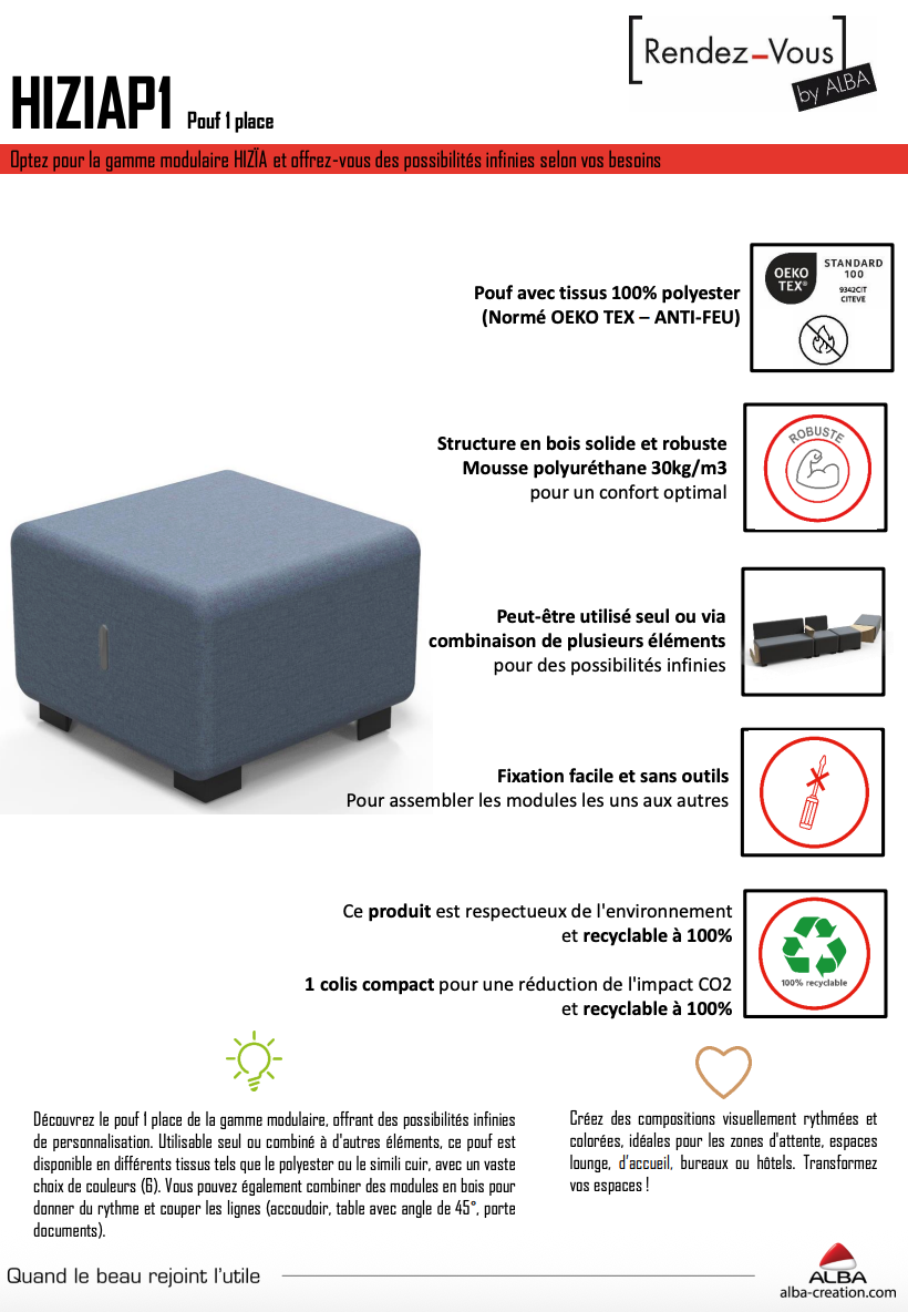 Offrez à vos espaces professionnels une touche de modernité et de flexibilité avec le pouf une place HIZIA.