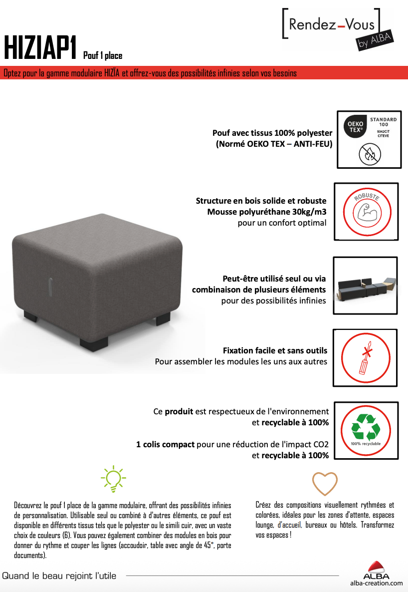 Offrez à vos espaces professionnels une touche de modernité et de flexibilité avec le pouf une place HIZIA.