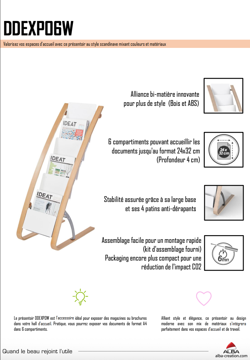 Le présentoir DDEXPOW 6 compartiments est l’accessoire idéal pour exposer des magazines ou brochures dans votre hall d’accueil. N'attendez plus, mettez en avant vos documents !