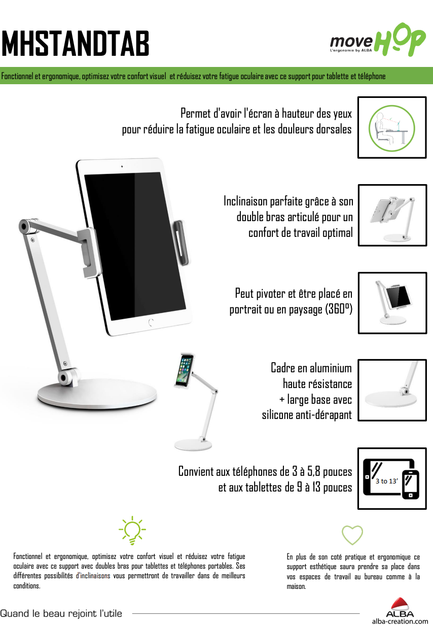 Fonctionnel et ergonomique, optimisez votre confort visuel et réduisez votre fatigue oculaire avec ce support avec doubles bras pour tablettes et téléphones portables. Ses différentes possibilités d’inclinaisons vous permettront de travailler dans de meilleures conditions.